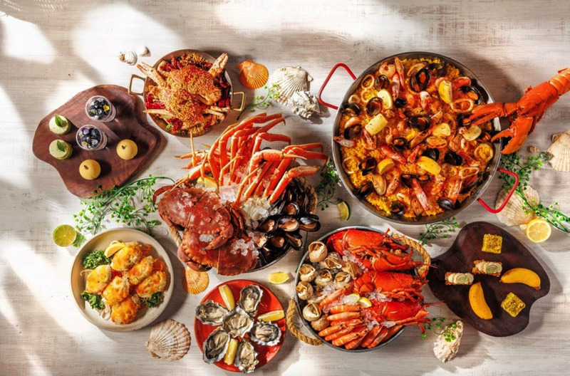 海鮮除了包括加拿大龍蝦鉗、新西蘭青口外,逢星期六、星期日及公眾假期午市更特別加推生蠔及俄羅斯鱈蟹腳。